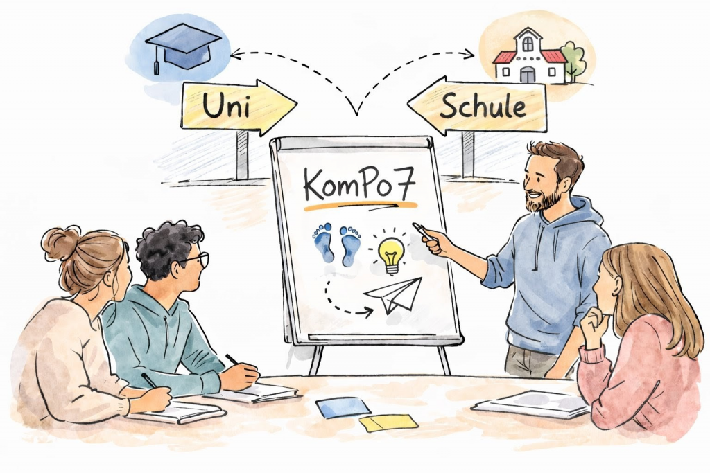 Das Seminar zeigt eindrucksvoll, wie universitäre Ausbildung und schulische Praxis wirkungsvoll verbunden werden können – im Sinne einer professionellen, stärkenorientierten und inklusiven Berufsorientierung mit KomPo7.